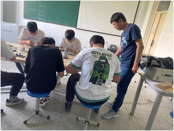 经过两节课的操作,在老师的指导下,同学们都完成了自己的实验。通过本次实验,使同学们的焊接技能又得到了提升。