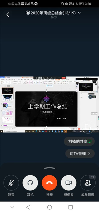 2月5日下午,辅导员任鹏飞使用钉钉视频会议召开班级工作总结会,所带9个班级对2020年班级工作进行全面总结。