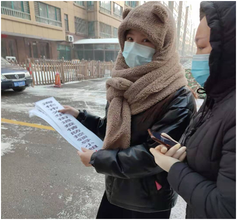 “菜送来了,我放在门口,您出来拿一下。”这是她每天说的最多的一句话,作为青年志愿者,她主动承担起为社区人员送各种必需品的工作。除了送生活用品,她每天还会逐户打电话、发微信,向社区居民宣传防疫知识,细致了解大家的生活状况,并记录每个人的体温情况。
