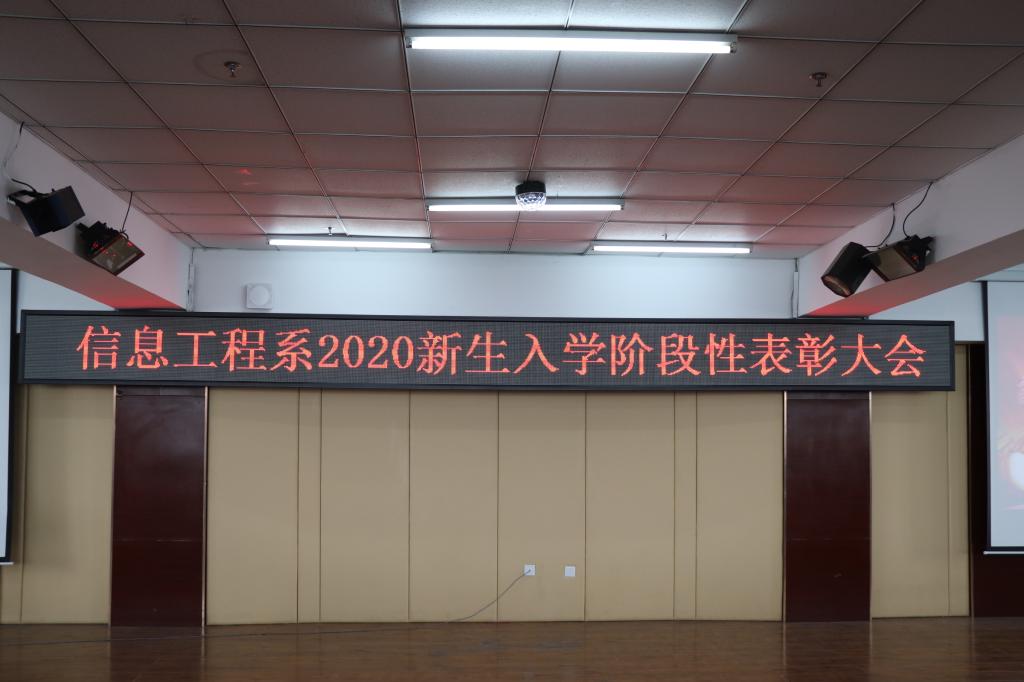 为了对新生入学以来各位学长的优秀表现以及新生积极进取、拼搏向前的精神进行表彰,2020年11月6日信息工程系在图书馆501报告厅举办了2020级新生入学阶段性表彰大会以及“家乡话夸家乡美”活动启动仪式。出席本次大会的有信息工程系学生工作副主任孙晓芳老师以及全体辅导员老师。