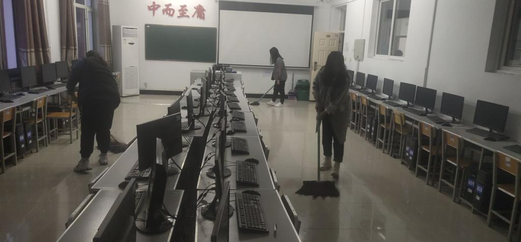 本次打扫的地点是一号教学楼3301、3302、3303、3305、3308、3401、3402、3403、3405、3202、3207、3208、3210、3307、3211、3212、3209、3203、3201等19个机房教室。分工明确后,同学们对机房教室里的垃圾、讲台和课桌抽屉等进行了清理。在打扫教室过程中,同学们积极配合,不怕脏、不喊累,展现了齐工程学子甘于奉献、服务师生的志愿服务精神,更为学生营造了一个“爱护环境人人有责”的文化氛围。