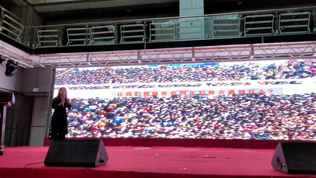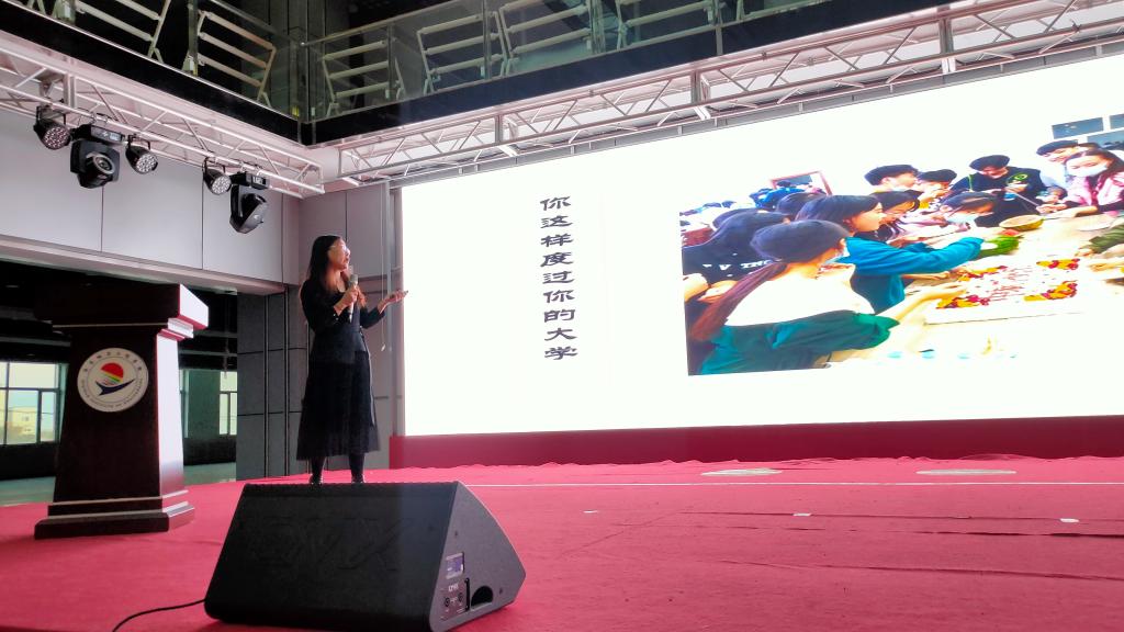 张静主任走上讲台与新生面对面交流,对入学的新同学们表示热烈欢迎。对于新生初入大学的自我定位问题,她讲到:考上大学不等于船到码头车到站、不等于梦想的实现也不等于一份好工作与家庭的荣誉。并举例说明以不同方式度过大学生活将收获哪些不同的结果。接着张静主任向新生提出“两问”,以“我们来大学做什么?”“毕业后我们要做什么样的人”教育引导学生思考青年的价值,正确开启大学生活方式,“扣好人生的第一颗扣子”,提醒同学们大学生不只是一个称谓,独立是大学最好的代名词。