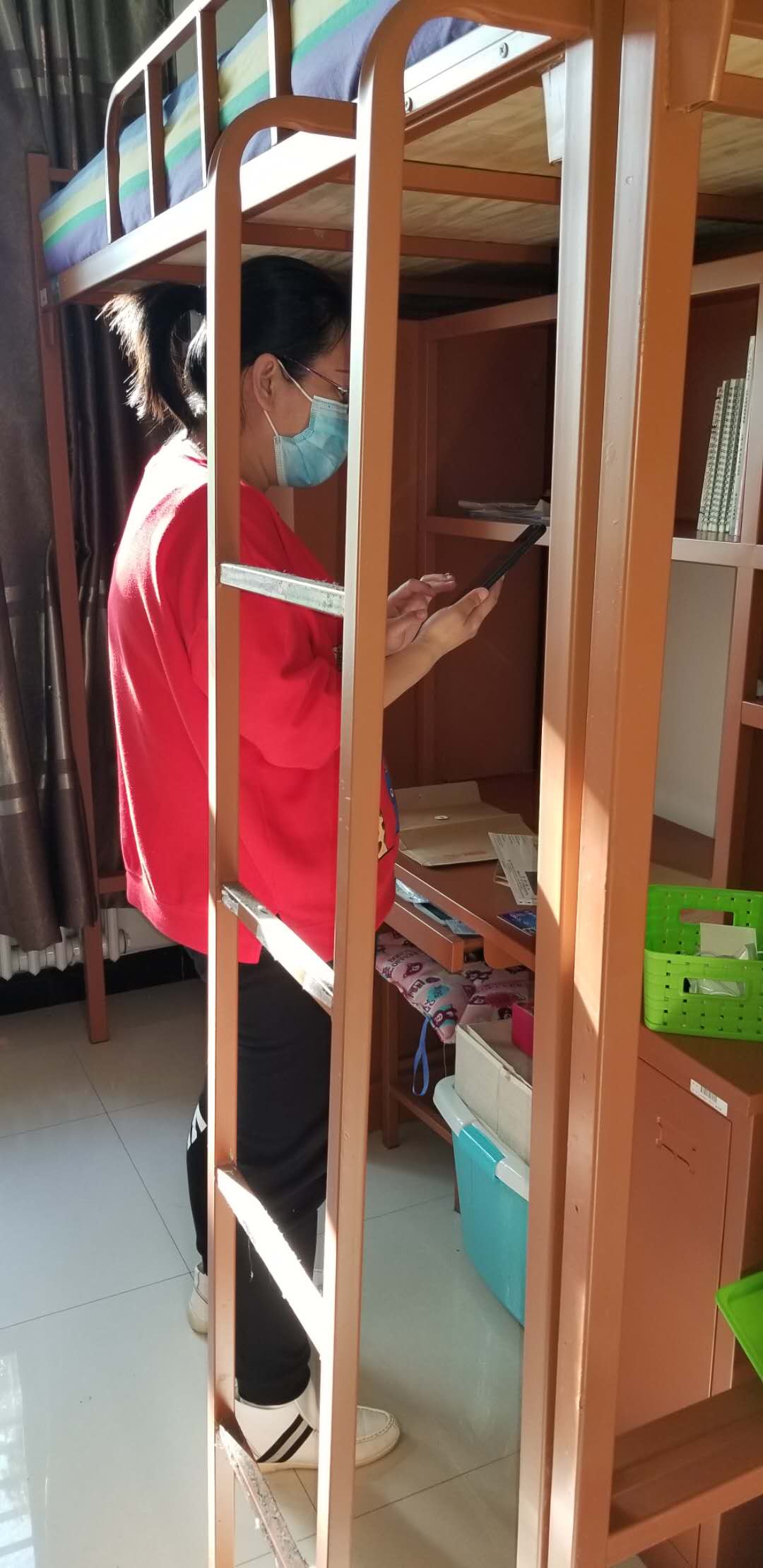 全面排摸、逐一确认、每日打卡、定时汇报,为了掌握学生的基本情况,她都要一一落实。为保证线上教学效果,她每天“走”进学生,与网上授课的教师密切联系,及时了解平台运行情况、学生出勤情况,解决学生反映的问题,缓解学生情绪,维护正常教学秩序,让全体学生在延期开学期间真正做到“停课不停学、学习不延期、效果有保障”。为丰富学生居家生活,疏导学生心理压力,她利用网络平台定期开展学生思想工作,推送疫情防控相关知识,并策划举办战“疫”特别活动。在校园里的她同样忙碌着,帮助学生邮寄课本、学习资料、生活用品;为了她的学生更好的完成毕业论文,进入到寝室当中帮助毕业生们拍摄毕业论文的照片,为他们亲自邮寄毕业论文的材料。办公区、教学楼、各公寓之间都留下了她来回穿梭的身影,给寂静的校园增添了几分美丽。
