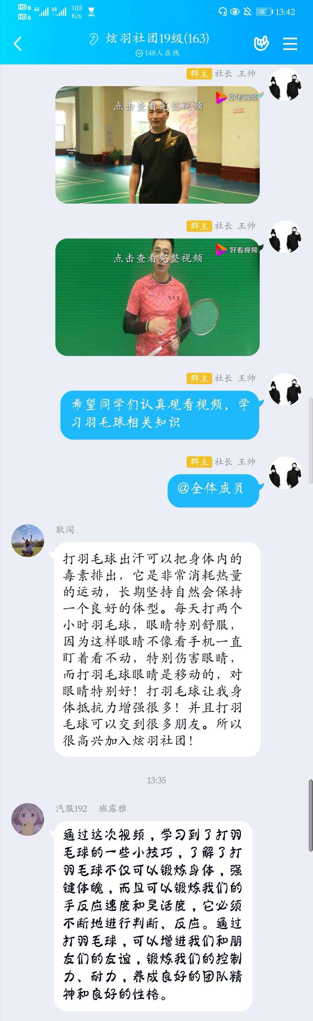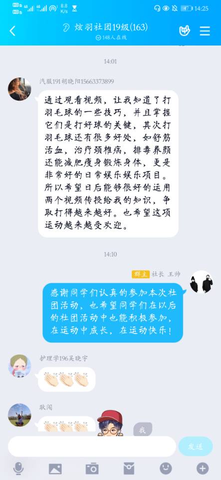 为增加学生体育知识,培养同学们的体育精神。2020年5月16日,炫羽社团全体成员在线上举办视频学习活动。此次活动,由社长王帅主持。