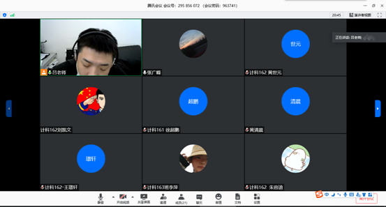 2020年5月12日星期二,计算机科学与技术专业专业长吕双庆老师在腾讯会议上开展了一次关于计科专业16级诚信考试会议。会议内容主要包括学生考风考纪,补考形式及安排和补考流程。