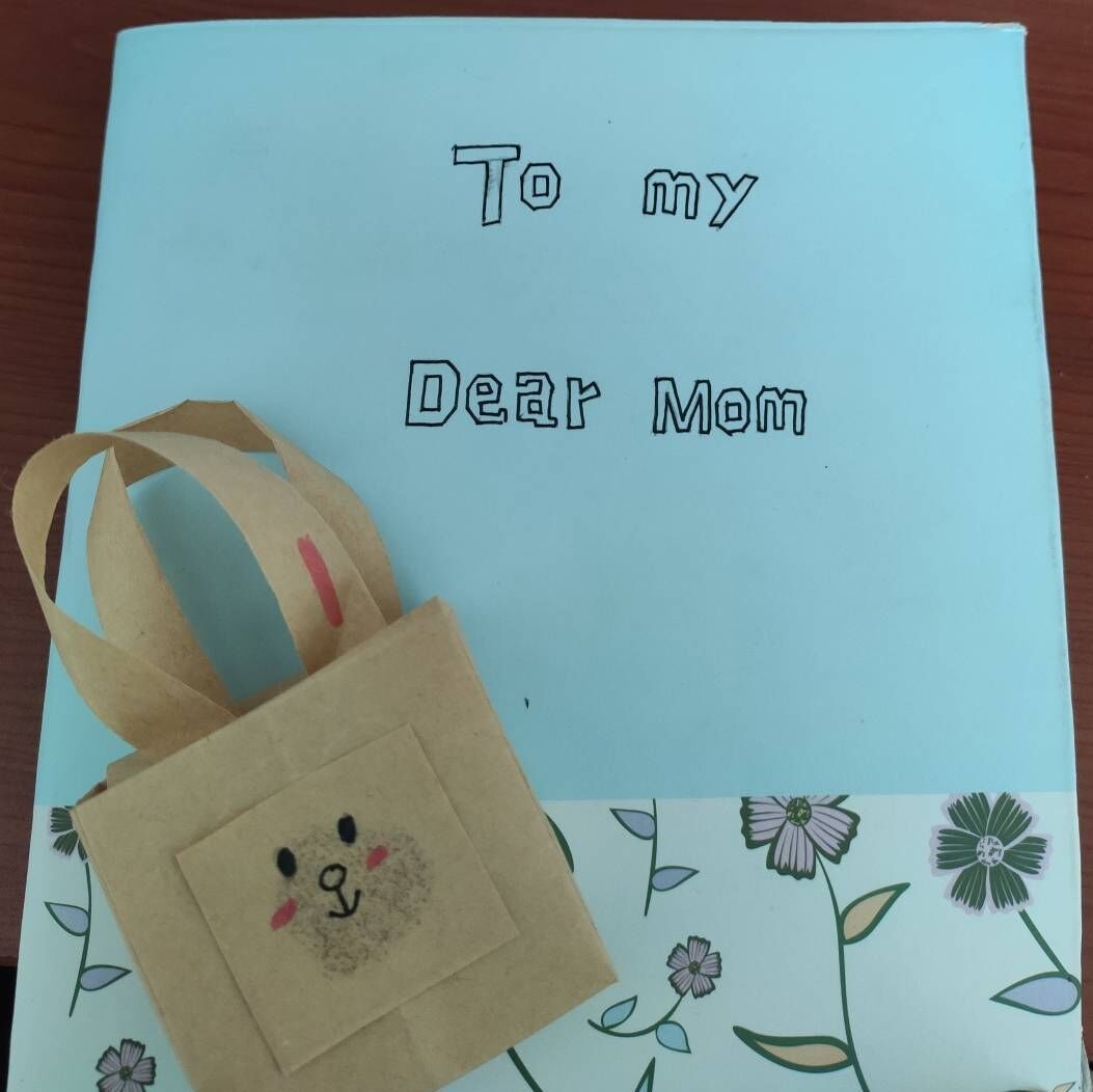 此次活动主要通过手工制作贺卡,加以运用英文书写的形式来表达对母爱的感恩。慈母手中线,游子身上衣。一针一线,是母爱对我们不舍的表达。如今我们亲手制作贺卡,用别样的方式来表达我们对母亲的爱。中国人有时是含蓄的,那我们就用英文直白,大胆的说出我们心中的爱。