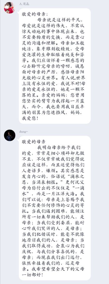 2020年5月5日,炫羽社团组织开展了,以“感恩母亲,给母亲的一封信”为主题,进行线上征文活动,成员们积极参与踊跃报名。