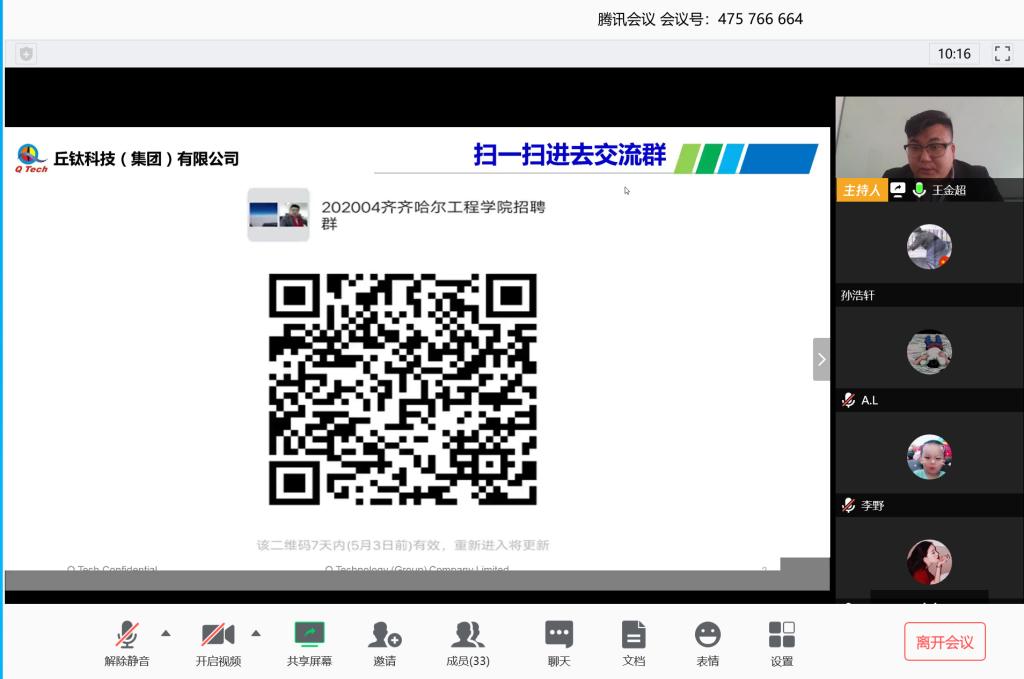 丘钛科技(集团)有限公司代表对公司的发展状况及2020届毕业招聘需求情况等方面进行招聘宣讲,并向毕业生发出就业邀请。