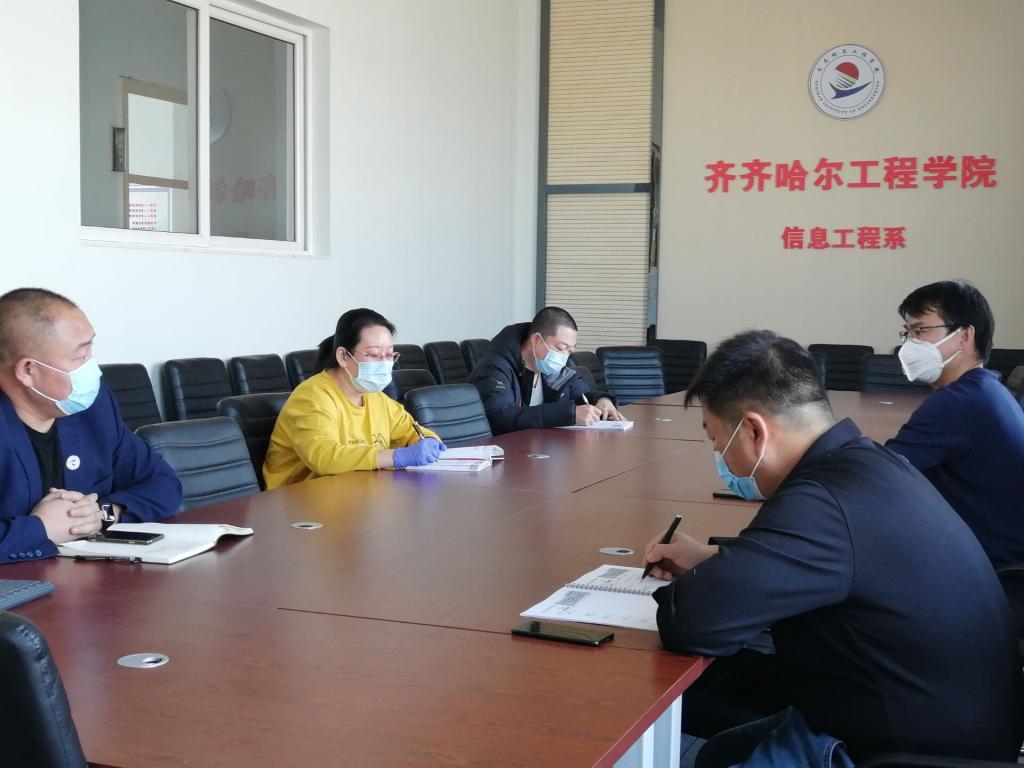 2020年3月24日11时,信息工程系在1号教学区2406会议室召开了2019-2020年度第二学期学生工作会议。学工副主任孙晓芳主持会议,武传宝主任出席会议并讲话,因疫情原因辛昊、刘晓丹两位老师视频同步参加。