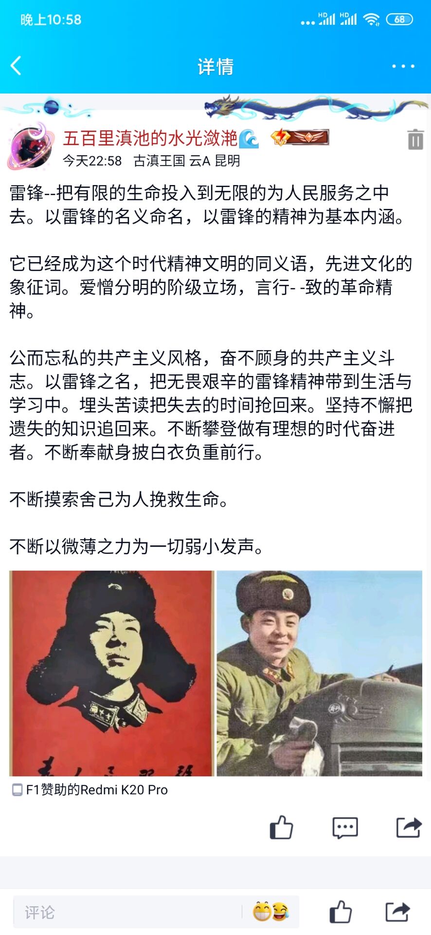 此次网络宣传雷锋精神主题活动的开展,不仅使身在家中的同学们感受到了雷锋精神赋予他们的能量,更培养了学生们的雷锋意识,在今后的生活中会加倍的传承弘扬雷锋精神,坚持为人民服务的高贵品质,并不断的从雷锋的每一个脚印、每一行日记、每一次行动和每一回思考中体验到精神的高度、生命的热度,汲取前行的力量。