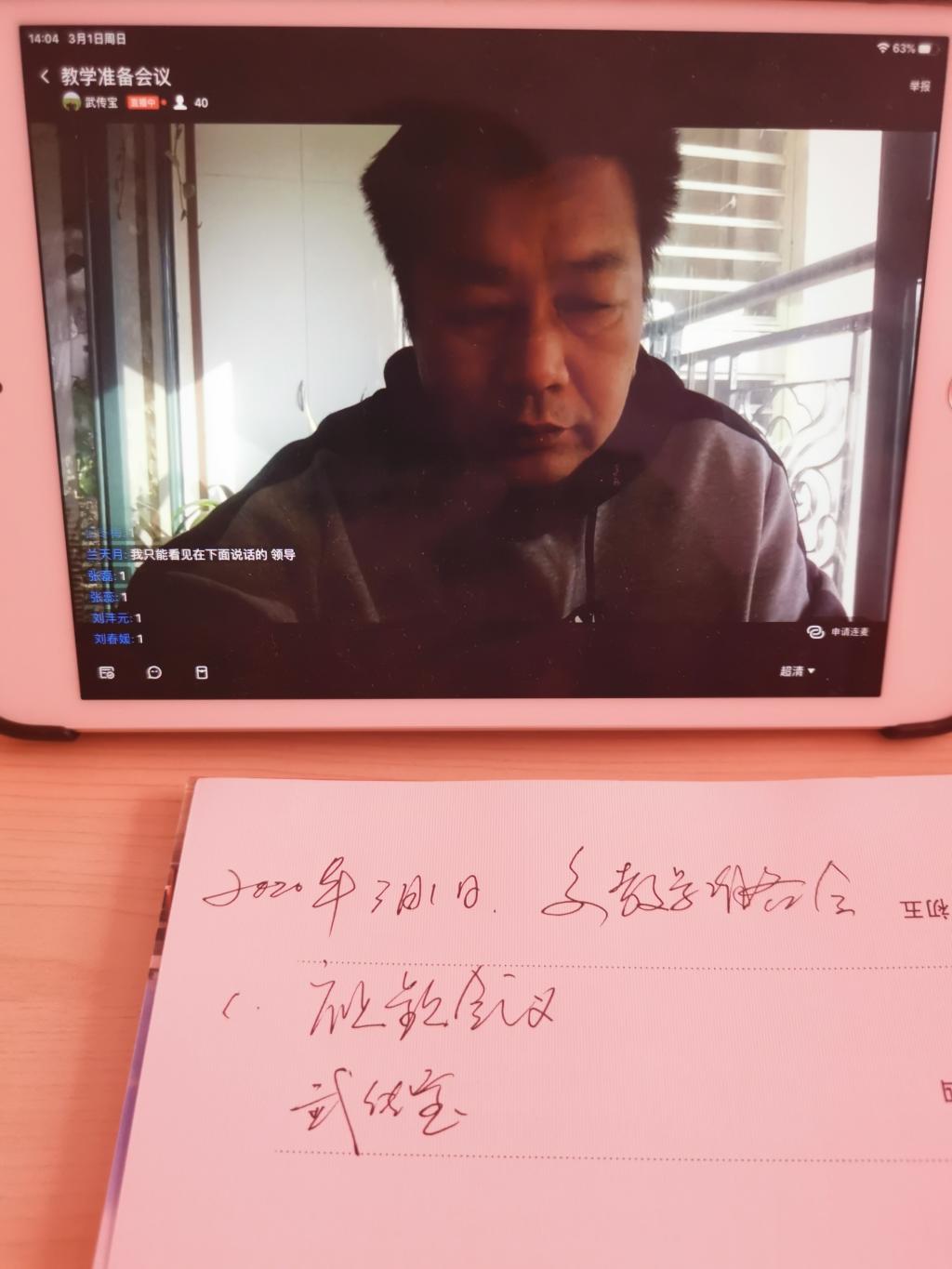 会末,武传宝主任再次强调,在疫情期间大家要做好自己本职工作,即便是在家办公也要认真完成所有的任务,线上教学手段大家要利用好,克服困难完成工作,各位教职工要主要勤通风、勤洗手,保证良好的身体状况,共同抗击疫情。