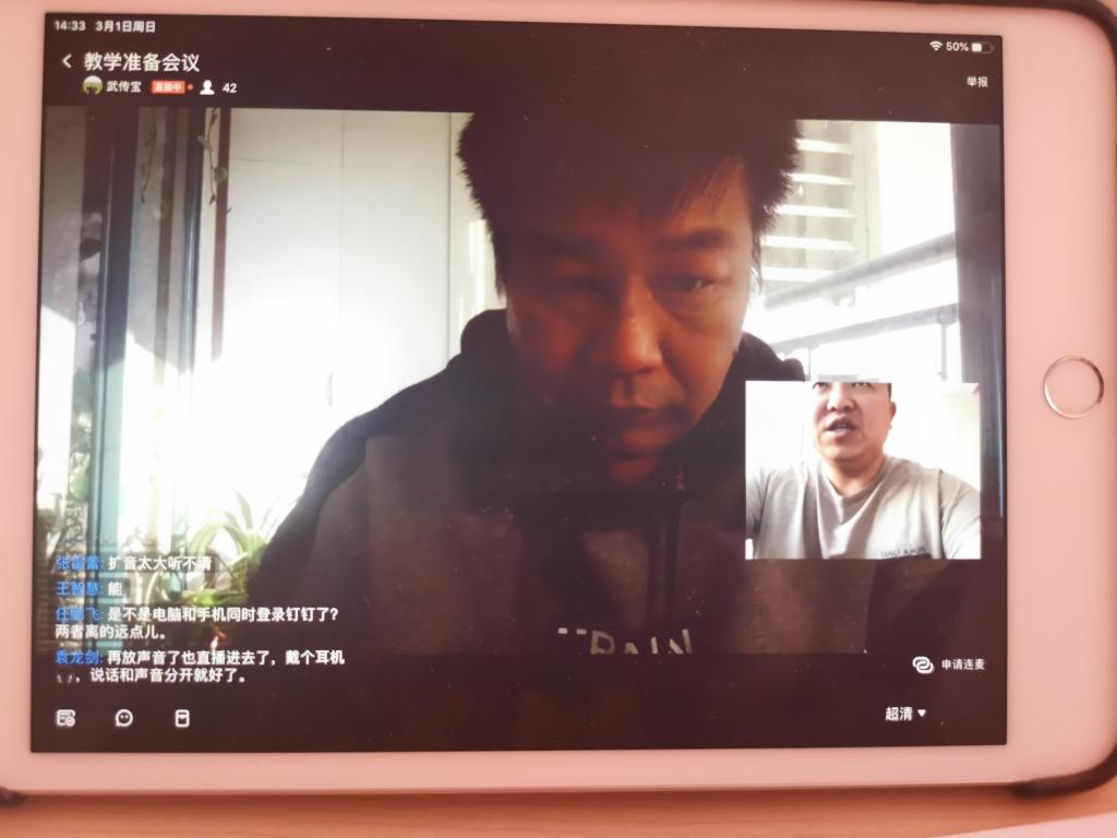 最后,是学工口,由学生管理副主任孙晓芳连麦,表示学生口将全力配合教学工作,坚决督促学生打卡考勤,认真梳理汇报线上教学发现的问题,及时严肃处理学生迟到、旷课情况,在线督导学生学习,关注学生情绪变化。另外,辅导员也将要在线上,组织班级以不同的形式召开开学和线上教学动员会。