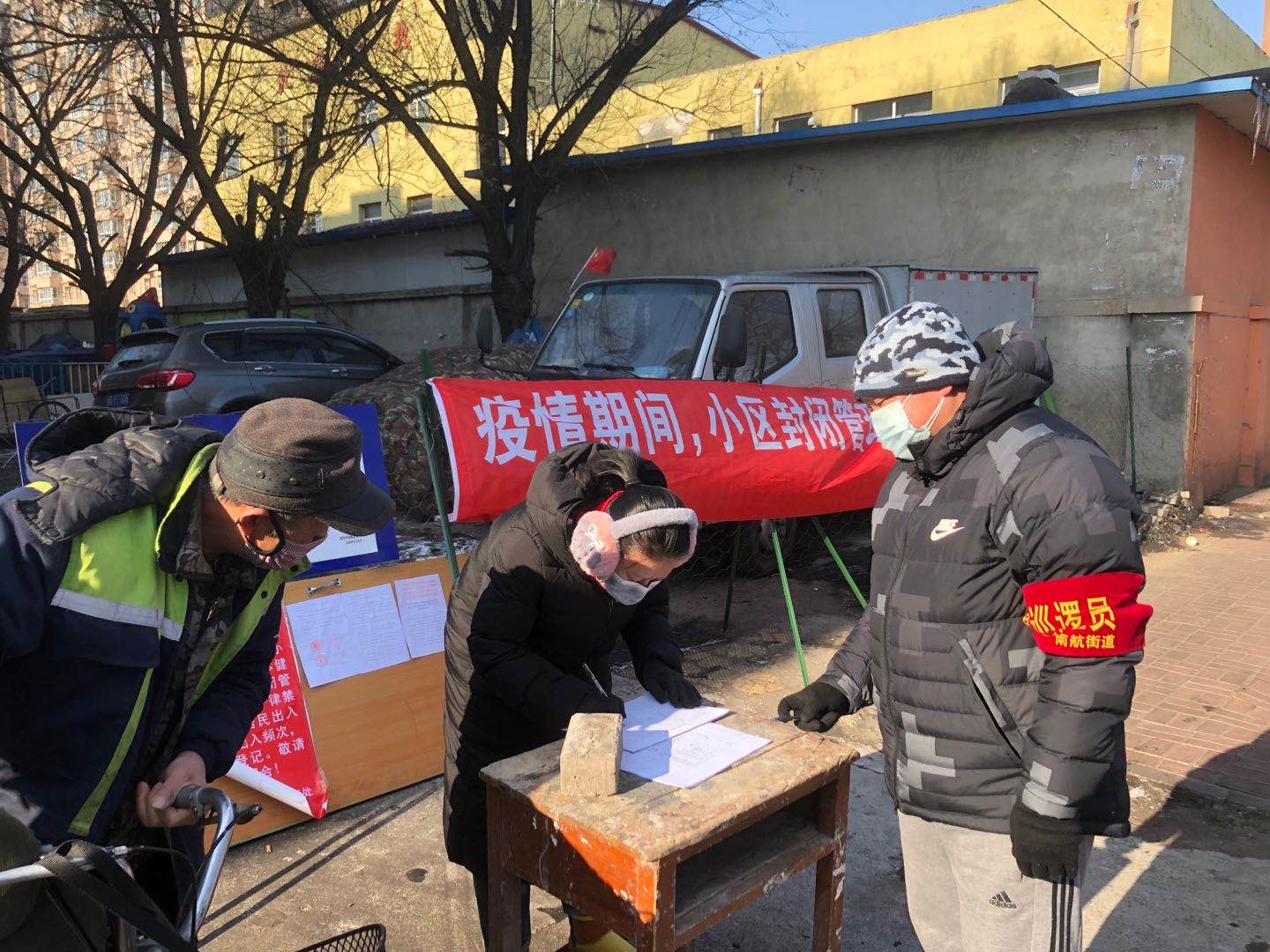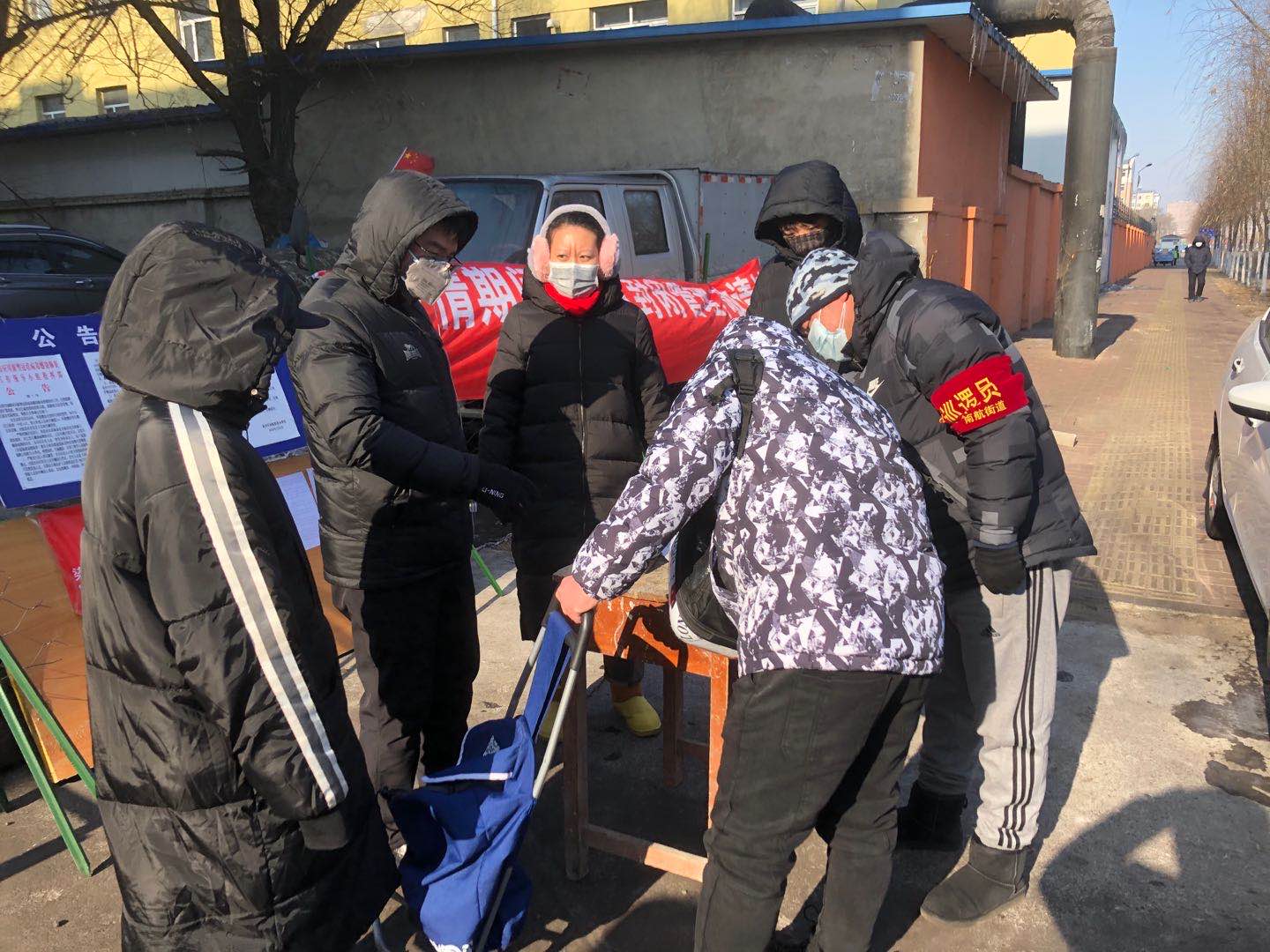 2020年2月9日,信息工程系辅导员老师来到齐齐哈尔市南苑小区参加“抗击疫情”志愿活动。此次志愿活动有学生工作副主任孙晓芳老师、信息工程系党总支书记任鹏飞老师、信息工程系团总支书记张雷蕾老师参加。