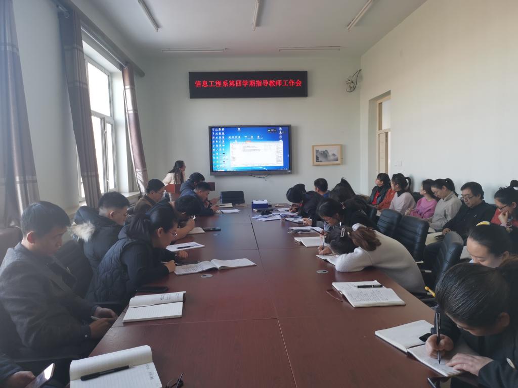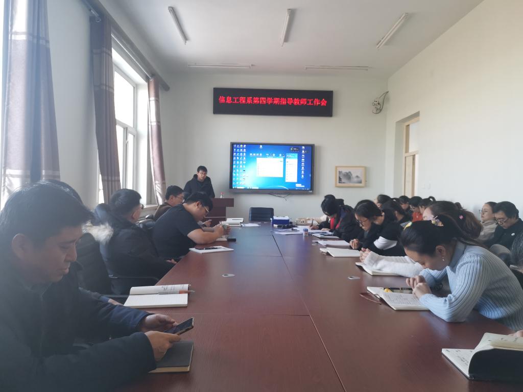1月2日,信息工程系在一号教学区2406会议室召开第四学期指导教师工作会。全体第四学期指导教师参加了会议,系主任武传宝、教学工作副主任刘春媛对第四学期实践教学工作分别提出了要求。