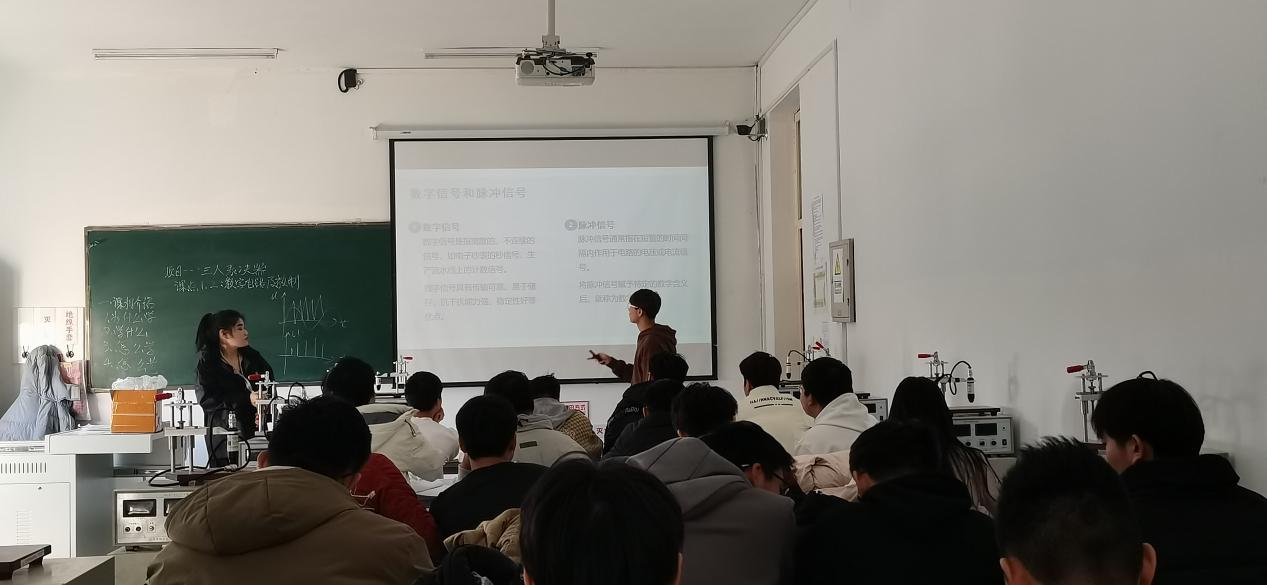 张莹老师在课前与学生进行互动交流,尤其关注学生的近期学习状况,拉近了师生距离,营造了良好的课堂氛围。授课活动,充分体现了以学生为中心的教学理念,从学生的角度出发,对教学的方式、方法、内容进行了精心设计,对数字电子技术价值剖析充分,融合职业发展和文化积淀,使学生产生了认同感,激发了学生的学习热情。同时还对学生的预习作业进行展示,推动了学生自我检测学习效果,提高了学习质量。