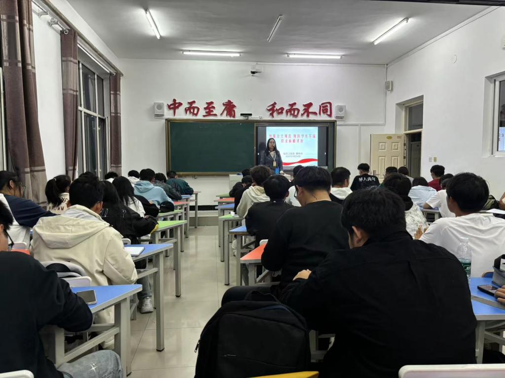 全国教育大会上提出紧紧围绕立德树人根本任务,朝着建成教育强国战略目标扎实迈进。为进一步加强学术诚信建设,强化学术道德教育,树立学术规范理念,9月24日下午,计算机科学与技术专业在一号教学区1403、1405教室,举办“加强论文规范 预防学术不端”职业前瞻讲座,由郭伟伟教授主讲,计算机科学与技术专业2024级全体学生参加。