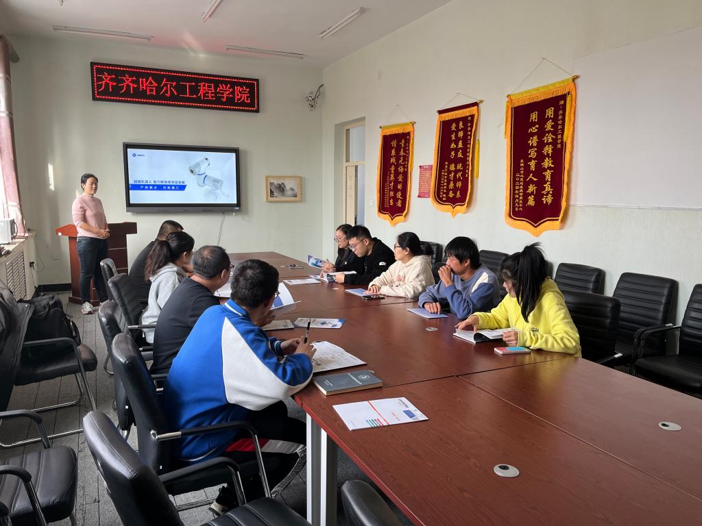 座谈会上,副主任李野对刘杰一行来校表示欢迎,对两专业现状及人才培养模式进行了简要介绍。她表示,希望通过本次会议,加强双方的交流与合作,共同为应用型人才培养贡献力量。随后,方案经理刘杰详细说明了越疆科技当前的发展前景。表示随着智能制造和数字化转型的加速推进,协作机器人在各个领域的应用将越来越广泛。其中还重点介绍了当前热门的ChatGPT与机器人之间的关系。刘杰指出ChatGPT技术作为自然语言处理领域的一项重要技术,被广泛应用于机器人产业中。并表示随着人工智能的发展,未来ChatGPT技术在智能化客服机器人、智能化工业机器人、聊天机器人以及智能化医疗机器人等领域都有着广泛的应用前景和商业机会。