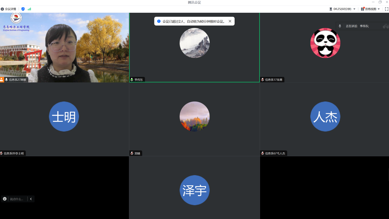 11月20日晚,信息工程系数据科学与大数据技术专业通过线上腾讯会议召开2025届毕业论文(设计)指导会,由数据科学与大数据技术专业负责人高敏主持。特邀请哈尔滨师范大学数据科学与大数据技术专业季伟东副教授,为数据科学与大数据技术专业2025届毕业生指导教师进行指导。