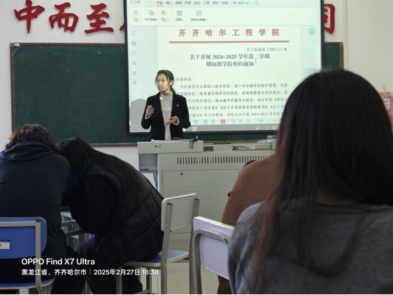 姜岩老师强调教学文件是教学质量的重要保障,要求全体教师认真校对教学大纲、开课说明等文件内容,确保规范、准确、完整。同时,她带领大家学习了《高等学校课程思政建设指导纲要》精神,要求将思想政治教育有机融入专业课程教学,实现知识传授与价值引领的统一。