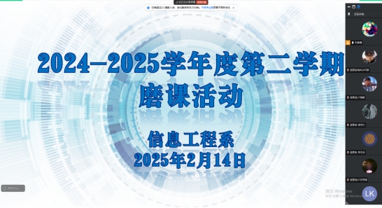 为深化教学改革,提升课程建设质量,信息工程系于2025年2月14日线上组织召开了2024-2025学年度第二学期教师假期磨课活动,本次活动聚焦学期初的开课资格审查工作,以教师说课的方式进行,活动由教学副主任刘春媛主持,系主任李野、各专业负责人和全体任课教师参加。