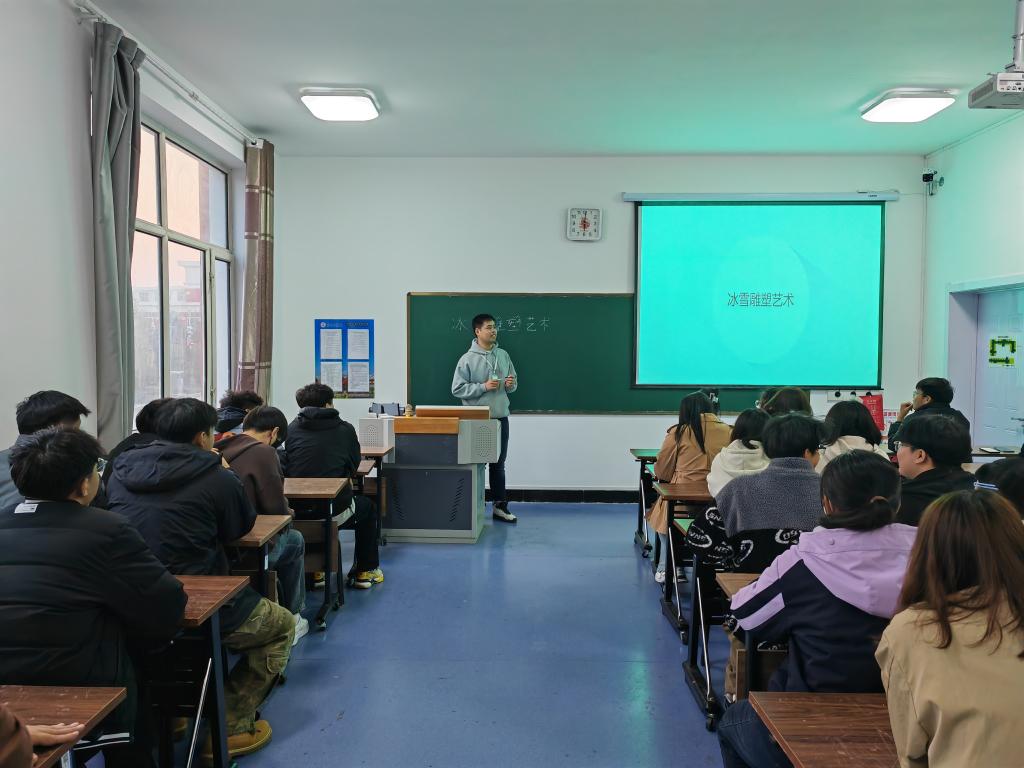 首先,辛明明老师阐述了冰雪雕塑微专业在当下艺术领域的独特魅力与新兴潜力,在冬季旅游热度攀升的大背景下,冰雪雕塑作为极具视觉冲击力的艺术表达形式,正逐渐从北方的冰天雪地走向更广阔的舞台,不仅承载着地域文化特色,更融合了现代设计理念与精湛雕刻技艺。而此次讲座,正是为了给大家提供一个深入了解冰雪雕塑艺术、探索微专业奥秘的契机。紧接着,从冰雪雕塑的历史渊源讲起,带着大家探寻冰雪雕塑艺术在不同历史时期的发展轨迹。从中世纪欧洲宫廷冰雪雕塑装饰的华丽初绽,再到如今全球各地冰雪节上令人惊叹的巨型冰雪雕塑奇观,每一个阶段都饱含着人类的智慧。还详细解读了冰雪雕塑的艺术风格分类,俄罗斯的厚重写实、中国东北的民俗风情浓郁,不同风格背后是各异的地域文化、民俗习惯与审美偏好相互交织。最后,在同学们的意犹未尽中的总结落下帷幕。同时发出号召,鼓励大家积极学习冰雪雕塑微专业。