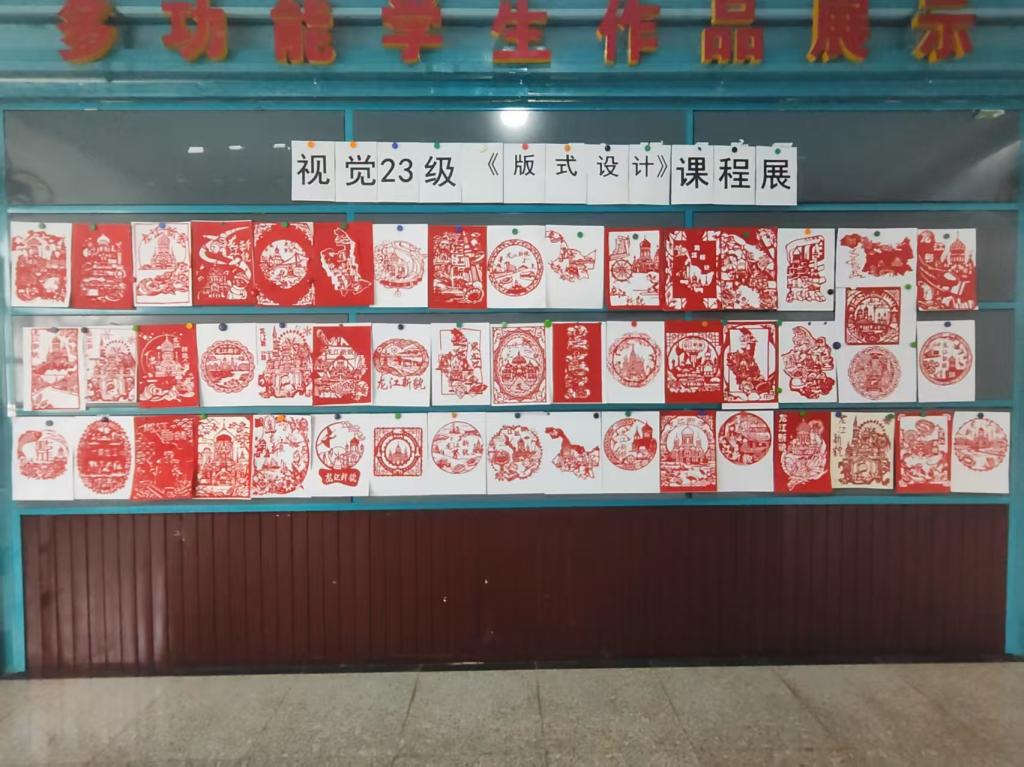 4月18日下午,视觉23级同学在1号教学楼四楼多功能学生作品展厅开展了《版式设计》课程展活动,主题为“龙江新貌”剪纸设计,视觉23级全体60名同学参与了此次活动,由张晶老师主持并指导同学们完成。