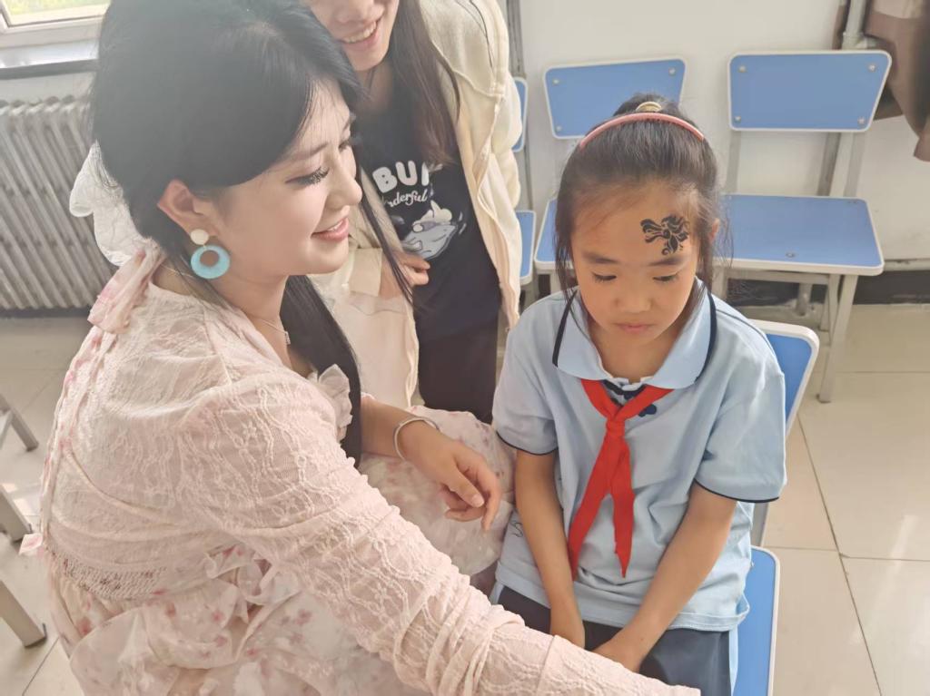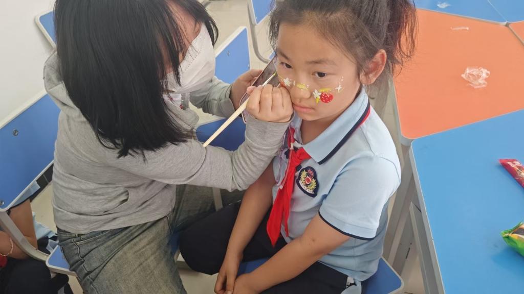 活动开始前,教师王昀碧向参与活动的同学们介绍了本次人脸彩绘的基本要求与注意事项,强调要在确保安全卫生的前提下,充分发挥专业特长,为小朋友们带来独特的艺术体验。活动开始时,同学们纷纷拿出精心准备的专业彩绘颜料与画笔,与小朋友们进行互动交流,了解他们喜爱的卡通形象和色彩偏好。在彩绘过程中,同学们运用娴熟的绘画技巧,将可爱的小动物、炫酷的超级英雄、梦幻的花朵等图案,栩栩如生地绘制在小朋友们的脸上、手背上。小朋友们兴奋地对着镜子欣赏自己的新造型,脸上洋溢着灿烂的笑容,现场充满了欢声笑语。