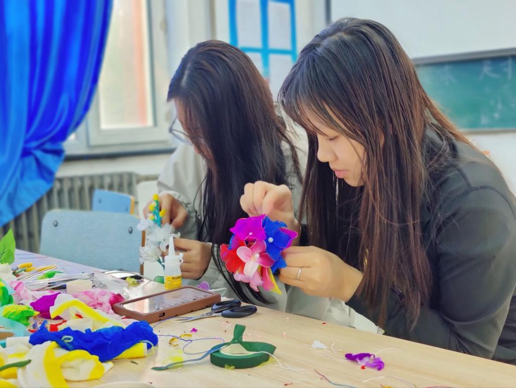 在金老师指导下,同学们从简单花朵造型入手,逐步提升难度。大家发挥创意,精心搭配色彩,动手能力也不断增强。最终,每名同学都完成了首个丝网花作品。看着自己的成果,同学们满是自豪与喜悦。他们表示,这门课程拓展了兴趣爱好,在制作过程中忘却压力烦恼,心情愈发愉悦,还收获了新的技能。