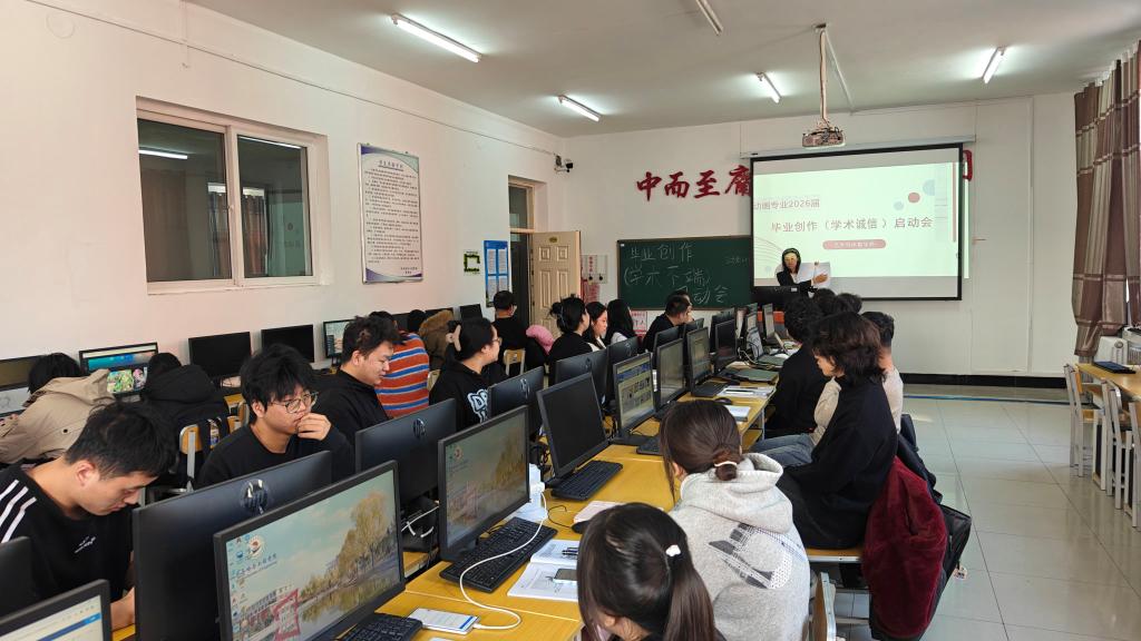 10月27日上午,在一号教学楼3208教室动画专业负责人佟鑫为全体动画2026届级毕业生召开2026届毕业创作(学术诚信)启动会。本次会议聚焦解读毕业创作的实施方案、明确前期调研要求与选题规范,强化学术诚信底线,为同学们有序推进毕业创作奠定基础。