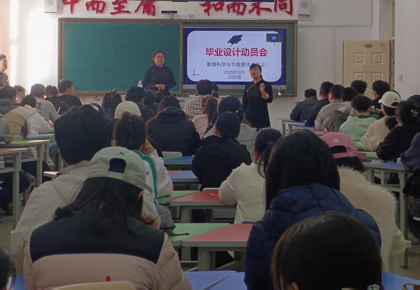 10月24日上午,为切实做好 2026 届毕业生毕业设计指导工作,助学子掌握科学方法、严守学术底线,数据科学与大数据技术专业顺利开展2026届毕业设计动员大会——明确学术不端行为界定与处置要求。大会特别邀请北京东方瑞通公司高级讲师:赵继伟,向毕业生分享“毕业设计成功之道”,同时增设预防学术不端环节,明确告知论文查重标准、引用规范及学术造假的严重后果。毕业设计指导教师代表以及全体2026届毕业生共计90余人参会,专业负责人高敏主持。