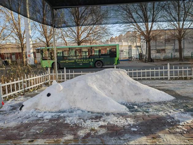 11月19日上午,冰上运动馆门前寒意盎然,艺术与体育学院辛明明老师带领冰雪雕塑微专业的同学们开展雪雕创作实训。
