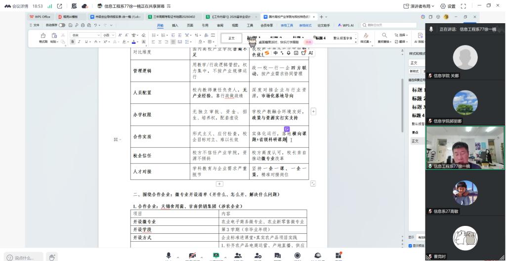 在充分剖析问题的基础上,会议重点探讨了“微专业”作为破解产教融合难题的重要抓手。大家一致认为,推行“一企一课、一企一策”的微专业建设模式,能够有效回应不同企业的个性化需求,提升企业参与的内生动力。通过为企业量身定制课程内容与培养方案,实现人才培养与岗位能力的精准对接,有助于形成校企共赢的合作生态。