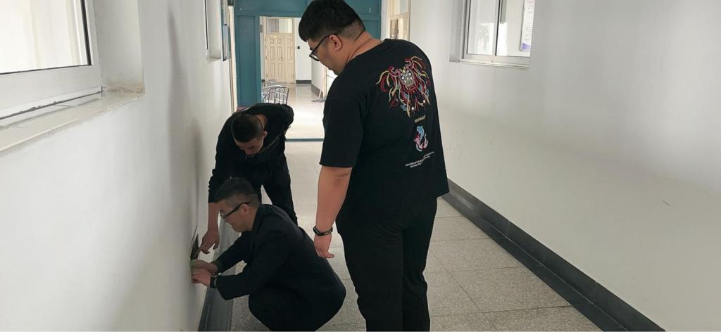 在检查过程中,检查组发现大部分实验室都能够严格遵守实验室安全规章制度,实验室环境整洁有序,设备维护得当。但也发现部分实验室存在一些问题,检查过程中,实验团队首先对实验室的电源面板进行了全面检查。他们查看了电源面板的安装位置是否合理,面板是否干净整洁,是否存在老化或损坏的情况。同时,还检查了走廊消防指示灯、电源面板的接线是否牢固,是否有裸露的电线等安全隐患。除了电源面板,技术人员还重点关注了实验室的线路情况。他们沿着线路走向,逐一检查线路的固定情况、绝缘层是否完好以及是否有乱拉乱接的现象。对于老化的线路和存在安全隐患的接线方式,技术人员提出了具体的整改意见,并要求实验室尽快进行整改。对于发现的问题,检查组及时记录并通知相关实验室安全责任人进行整改报修。