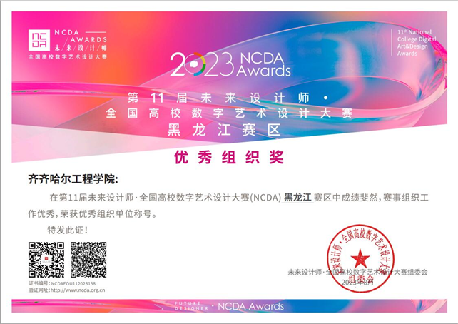 今年4月,我校视觉传达设计专业全体学生参加未来设计师.全国高校数字艺术设计大赛,并且取得了优异的成绩。齐齐哈尔工程学院在黑龙江赛区成绩斐然,荣获优秀组织单位称号。