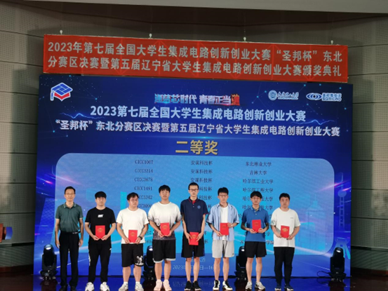 7月14日至16日,由全国大学生集创赛东北赛区组委会主办,大连理工大学承办的第七届东北赛区集创赛如期举行,有多所高校报名参赛,我校参赛团队同哈尔滨工业大学、哈尔滨工程大学、东北农业大学、哈尔滨理工大学、大连理工大学同台竞技。经过角逐,我校由宋婧鹏、张顺飞组成的“聚星”队获得二等奖。