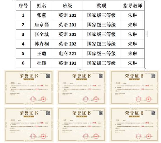 近日,由中外语言文化比较学会主办、中语智汇科技(厦门)有限公司承办的“第五届全国高校大学生外语水平能力大赛”全国总决赛落下帷幕。我校学生张燕、唐章磊、韩卉桐等6名学生获得国家级三等奖。学校被授予“最佳院校组织奖”称号,指导教师朱琳被授予“优秀指导教师”荣誉称号。