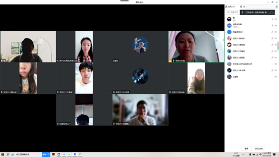 5月28日下午,由视觉专业张晶、王慧茹老师,带领黄小珊组和陆睿组成员完成企业芊之眸化妆用品有限公司线上调研工作,带领杨子龙小组和孙洪涛小组完成企业北京第嘉文化传媒科技有限公司线上调研工作,由张晶老师主持,共19人参加。