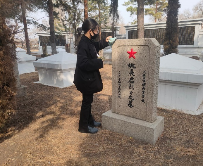 乘车到达西满革命烈士陵园后,动画专业学生先为烈士墓碑拭去灰尘,并对刻字及雕刻描黑上色。随后,全体同学们在纪念碑下集合,团总支书记刘阳致哀悼词,全体鞠躬默哀,在庄严雄伟的纪念碑下,表达深深哀思,并为烈士纪念碑敬献花篮。团总支书记刘阳讲到,悼念革命先烈,是每一个有志爱国青年应尽的责任和义务,是国家和学校对思政教学的落实。仪式结束后,在烈士陵园纪念馆讲解员的带领下,同学们进行了参观学习,进一步了解了革命历史。