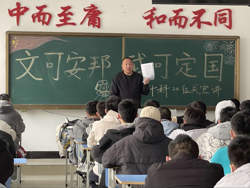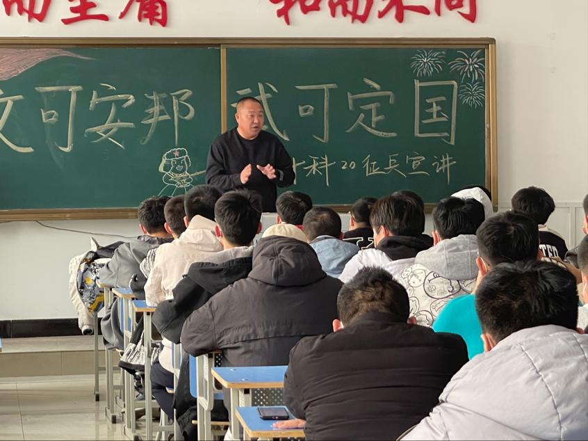 3月10日下午,信息工程系计科20级在一号教学楼a区1403室举办“文可安邦,武可定国”征兵宣讲会。本次宣讲由辅导员郭磊老师主持,系学生工作副主任孙晓芳老师,计科20级全体男生,共100人参加。