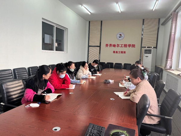 首先,集电专业长李野作为会议主持人说明了召开此次教学研讨会的目的,重点对教师贯彻教学规范提出要求,然后按照教研团队中,老带新的方式,指导新教师的教学工作,以新教师张莹所教授的《电路基础》专业课为例,讨论张莹老师在课程设计中所遇到的问题以及目前仍可以完善提高的地方,进而提高教师的教学质量。接下来由本门课的任课教师张莹老师提出了在整体的教学设计中,关于课程思政设计方面的问题,然后又针对学习手册的设计过程又提出了自己的看法。随后,系领导刘春媛针对张莹老师在课程设计中所遇到的问题,提出了很好的建议,如通过引入思政故事,将课程思政元素融入课堂,并强调要将二十大会议精神融入课程设计之中。其次在学习手册设计方面,通过设计学生反馈来评价学生学习效果。接下来,电科赵芳老师针对自己在课程设计中的教案设计中提出自己的问题,大家一起积极讨论。最后刘春媛主任强调,做好课程的教学设计,在整体教学活动中起着至关重要的作用。需要多思考才能有所突破。在日常工作中,多想创新办法,做好新教师的指导工作。