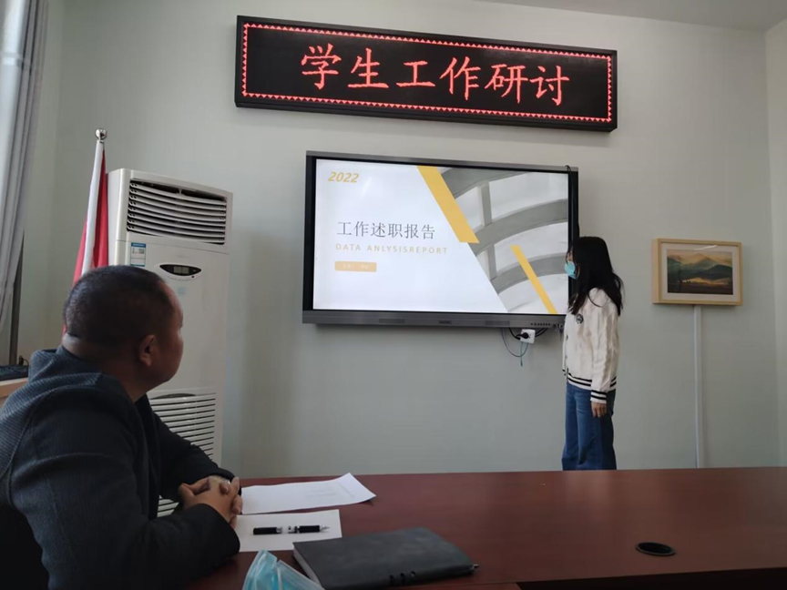通过此次汇报, 我系辅导员对自己2022年度工作进行总结,反思自己存在的不足,继续发扬自己工作的优点,建立自己工作特色。进行2023年工作规划,突出工作重点,认真完成辅导员工作。