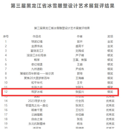 近期,2022第三届黑龙江省冰雪雕塑设计艺术展征稿圆满落幕。我校动画专业教师张振兴老师在比赛中获得佳绩。