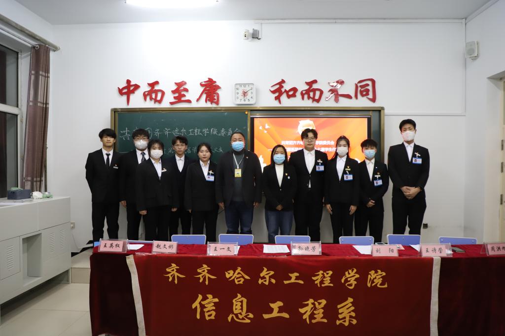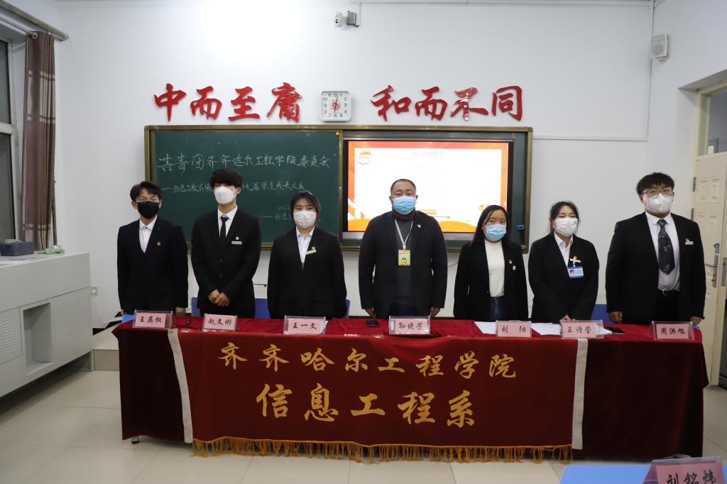 大会庄严开幕,全体起立,奏国歌。首先由信息工程系团总支书记刘阳老师做2022年工作报告。报告总结回顾了团总支一年以来所做的工作和取得的成绩,明确了下阶段工作的目标和任务。接下来团总支纪检部部长刘凯旋读代表资格审查报告。王诗莹、王英权、王一文、周洪旭、郑法鑫、赵文彬分别进行选举演讲,纷纷汇报自己在团总支一年以来的工作情况、理想抱负和今后的工作理念。会议以公开投票选举的方式,选举产生了新一届信息工程系团总支委员会,选举王诗莹为团总支副书记,王英权为组织部长,王一文为宣传部长,周洪旭为纪检部长,赵文彬为青工部长。最后新老干部进行交接,新一届信息工程系团总支副书记王诗莹致闭幕词。