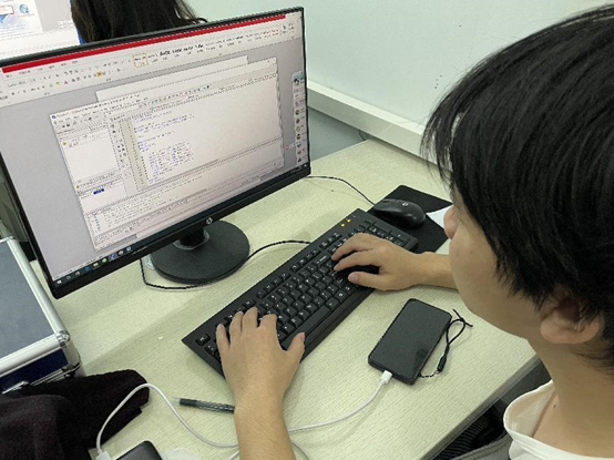 本次比赛要求学生根据比赛现场选择的题目,运用EDA技术在规定时间内进行电路设计,所用编程语言不限,但是学生的作品所实现的功能必须与题目要求一致,否则视为无效作品。比赛开始,参赛学生依次抽取自己的题目,在规定时间内独立完成制作。题目分为A类题B类题两种,B类题难度较大,学生可以选择进行挑战,如果顺利完成可以获得额外加分。有9名同学选择挑战B类题,并由4人顺利完成,其他参赛同学为他们送去了热烈地掌声和喝彩。第一名完成的同学在赛后为大家分享了自己的感受:“很高兴能在比赛中展示自己的实力,也希望大家都能有所收获”。