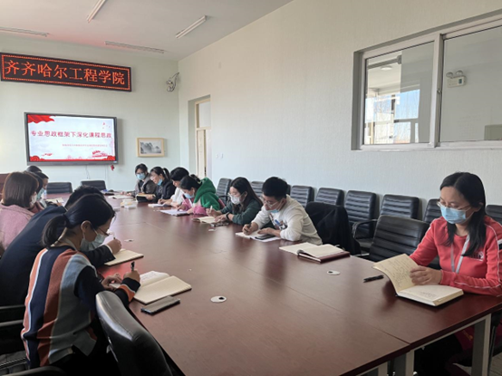 系主任刘春媛分享了对课程思政的认识,结合《工程数学》课程的概率论发展史,谈批判性思维和培养学生严谨细致认真的态度,强调教师要提高重视程度,鼓励教师积极申报课程思政教科研项目。基础部教师李爽、孙婷婷结合《大学英语》课程分享了课程思政设计思路和实施过程,列举了基于服务专业选取的“网络维护测试”、“界面设计”等翻译实例,引导学生翻译时要细心、耐心、专心,严谨细致,启发创新思维。魏军老师谈到,在课程思政背景下,要明确“教什么”“为什么教”以及在授课过程中挖掘知识背后思政元素;就大数据教师的提问,细致分析了“道德、情感、哲思、审美、批判性思维”的内涵和外延,并结合党的二十大与时俱进地阐释了课程思政的重要性;提出课程思政要符合教育规律、学生成长规律,结合专业、行业、产业发展史融入思政元素,探究专业知识背后的故事和启示,注重道德底线、科学伦理道德的课程思政教育。大数据教研室全体教师结合任教课程深入交流课程思政实施经验。