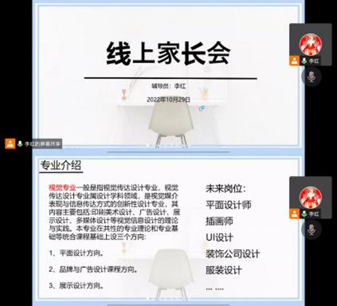 10月29日下午,视觉传达设计专业、动画专业辅导员李红召开22级两专业线上家长会。