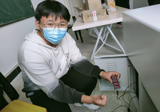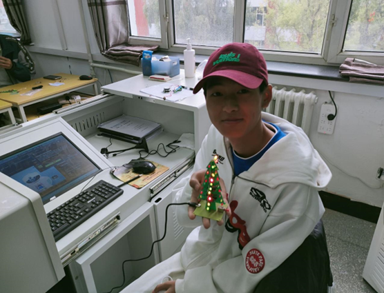 首先,张莹老师向同学们强调了实验室安全注意事项,并讲了此次电子DIY大赛的流程,随后下发套件让同学们开始了焊接。虽然同学们并不是第一次焊接了,但是面对陌生的套件还是有些束手无策,不过在两位学长及张莹老师的悉心指导下,同学们也渐渐变得得心应手了起来。同学们一共制作了三种套件,蓝牙音响、圣诞树和计时器。虽然制作有点周折,但是当同学们看到自己制作的作品正常运转起来时都很开心,露出了会心的笑容。