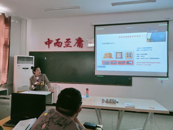 随后讲座开始,韩楠楠老师向同学们介绍了芯片产业的相关知识和芯片的发展历史,她强调在集成电路行业中需要具备工匠精神,要刻苦专研。还讲述了我国目前芯片市场面临的三大挑战,在国际芯片技术竞争激烈中,我国芯片行业人才供不应求,芯片自给率较低,需要新的芯片制造工艺和方法得以持续。全球芯片潮对中国来说是一个机遇,作为新时代大学生应肩负重任,在未来的芯片发展中大展身手。
