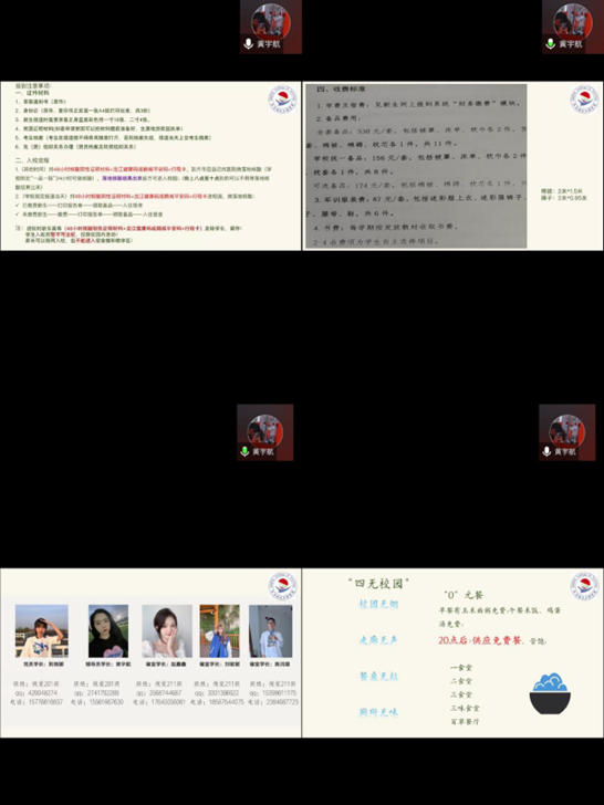 活动中,专业长为大家展示本学校和专业的视频介绍,通过专业长的讲解让大家更直观的了解学校与专业。随后,由新生辅导员为大家介绍入学流程与学校的注意事项,方便大家更了解本学校的规章制度。最后,由学长带领大家进行自我介绍。新同学们通过才艺展示、家乡介绍来让大家更快的熟络起来。