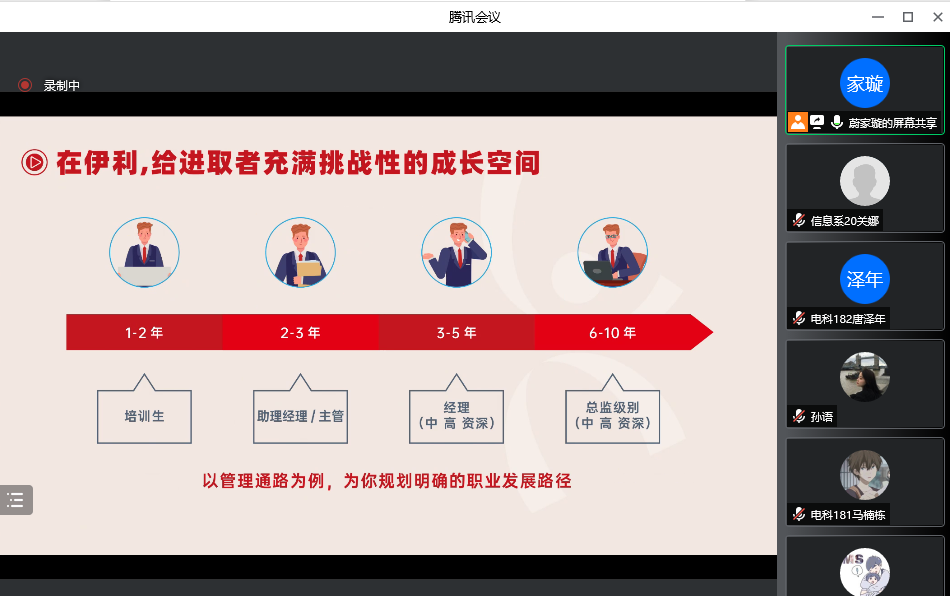 会上,天津伊利乳品有限公司人事蔚经理首先为大家简单介绍了天津伊利乳品有限公司概况。随后,蔚经理又对企业业务和招聘岗位进行了讲解,让同学们对天津伊利乳品有限公司有了一定的了解,同时为大家分析如今的就业形式,希望同学们能够珍惜每一次工作机会,锻炼业务能力、积累工作经验,并对同学们发出了邀请。会末,张振笋副院长讲到,与企业的合作是我校多年办学中为学生就业工作谋发展的关键,此次访企拓岗虽然是通过线上方式,但是通过蔚经历的介绍,很好的展示了企业文化,相信的今后的合作中,企业可以让学生发挥特长,展示自我。